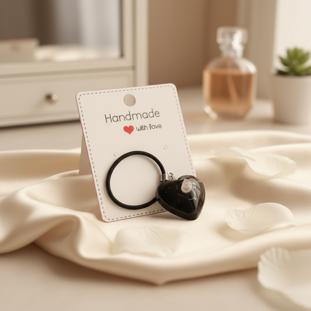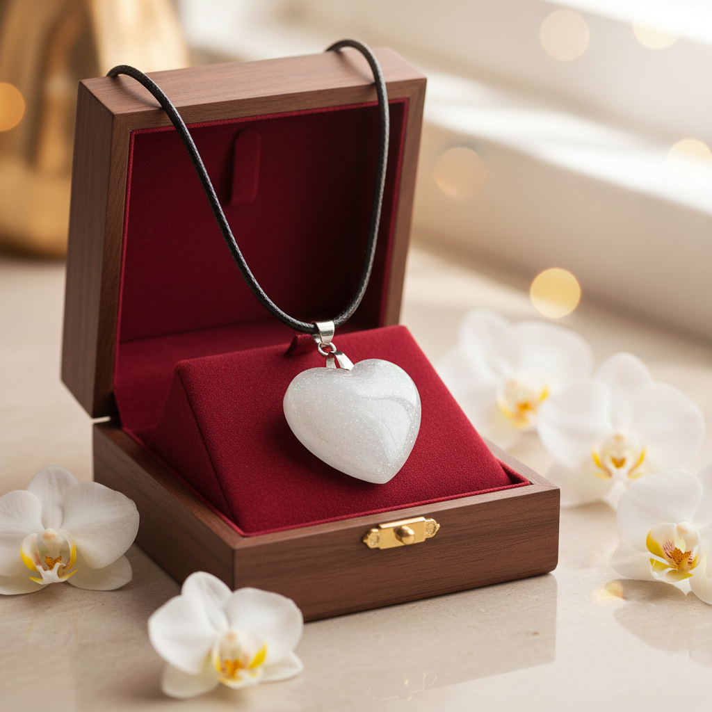Sydämen muotoinen epoksihartsiriipus keinonahkanyörissä