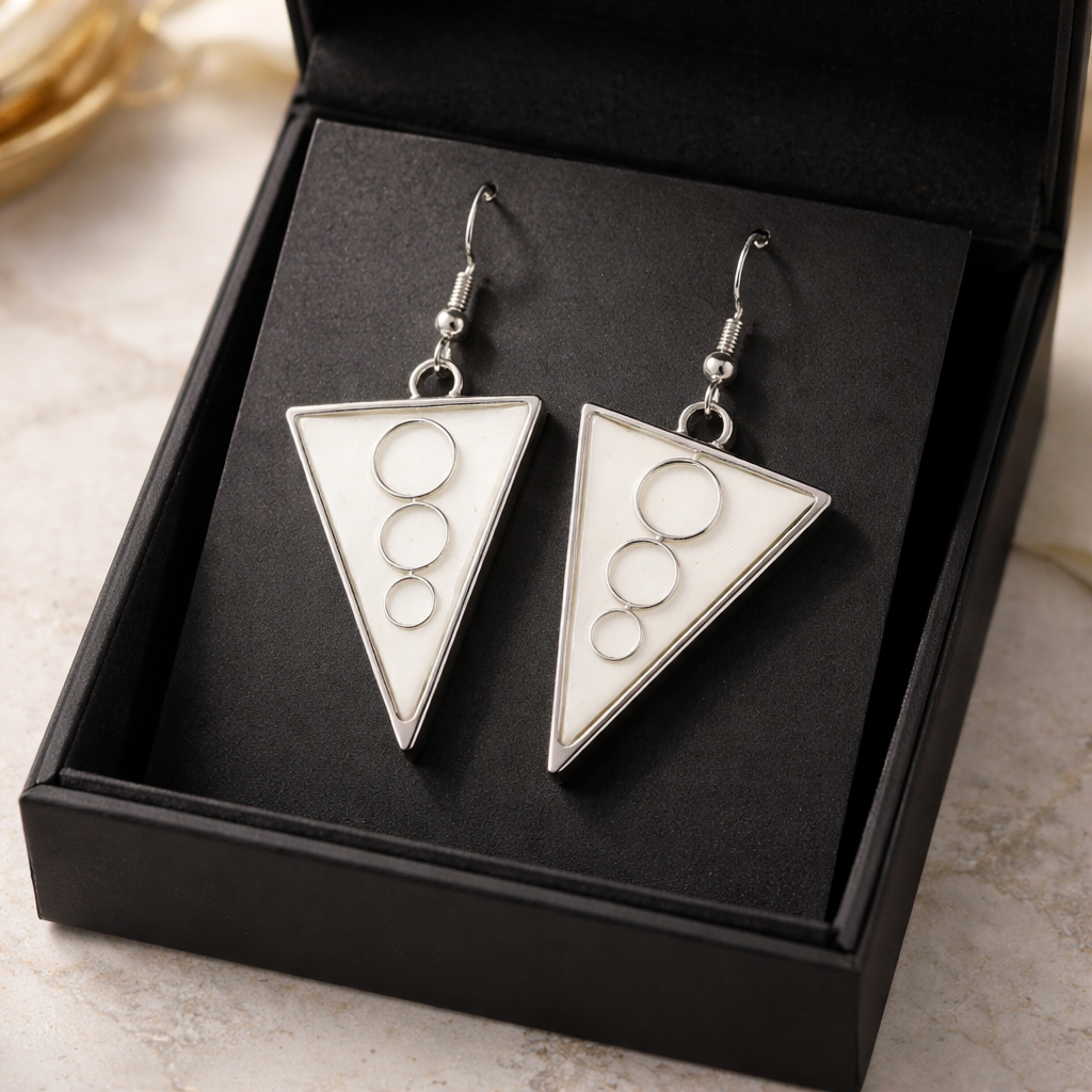 These geometric triangle earrings are designed for those who love clean lines and timeless minimalism. The subtle circular detail adds a unique touch while keeping the look refined and elegant.
