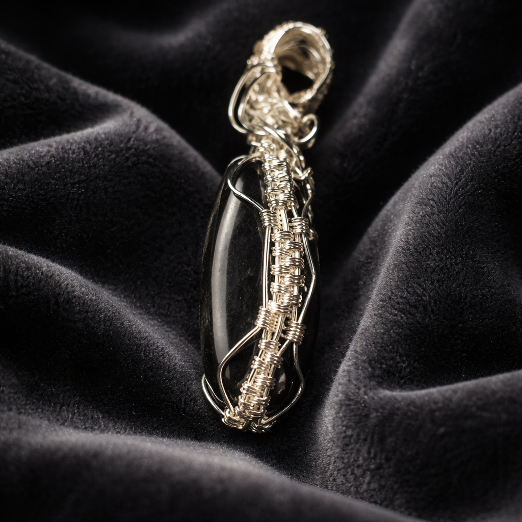 Tämä käsintehty labradoriitti-riipus on täynnä mystistä voimaa ja syvää sinistä hehkua. Jokainen valon osuma paljastaa kiven ainutlaatuisen labradoriittiefektin – kuin revontulet vangittuna kiveen.