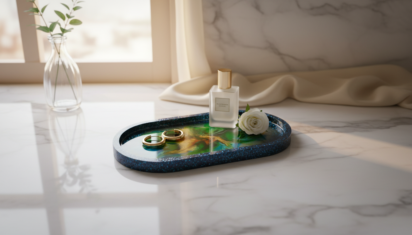 Kaunis käsintehty jalusta, joka on valmistettu kirkkaasta epoksihartsista ja koristeltu luonnon inspiroimilla väreillä. Jokainen kappale on uniikki – värisävyt ja kuviot muodostavat kauniin, elävän pinnan, joka tekee jalusta ainutlaatuisen.