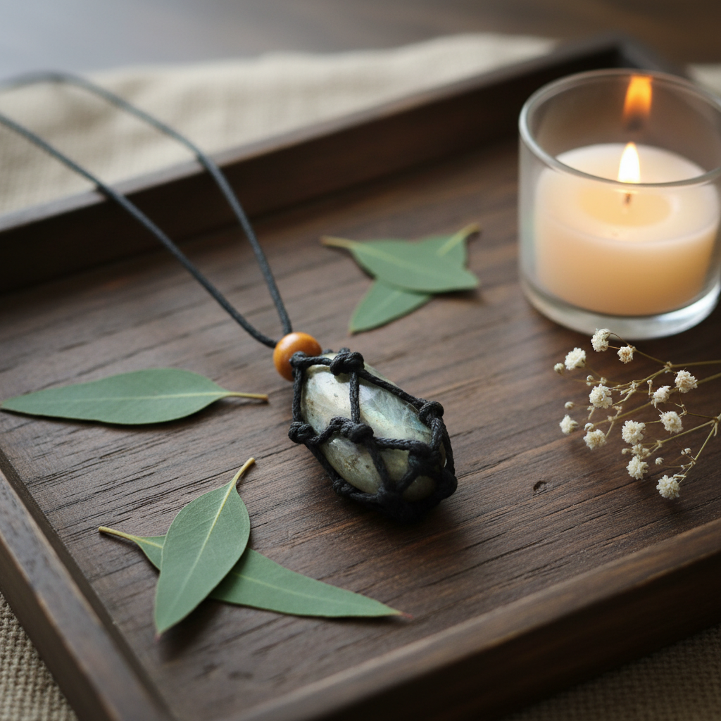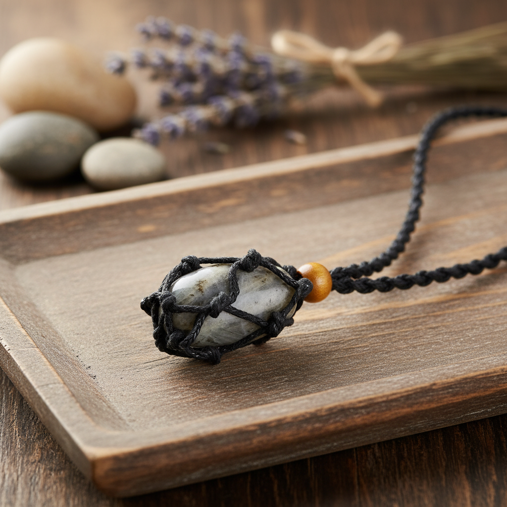 Käsintehty amuletti luonnollisesta labradoriitista – kivestä, joka tuo mielen rauhaa, sisäistä harmoniaa ja vahvistaa intuitiota. Sen mystinen hohde suojaa energiaa ja auttaa kuuntelemaan omaa sisäistä ääntä. Jokainen amuletti on ainutlaatuinen.