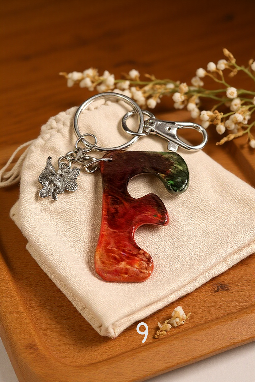 Beautiful handmade resin letter keychains. Each piece is decorated with glitter and pigments, making every letter unique. Perfect for keys, bags, or as a small gift.