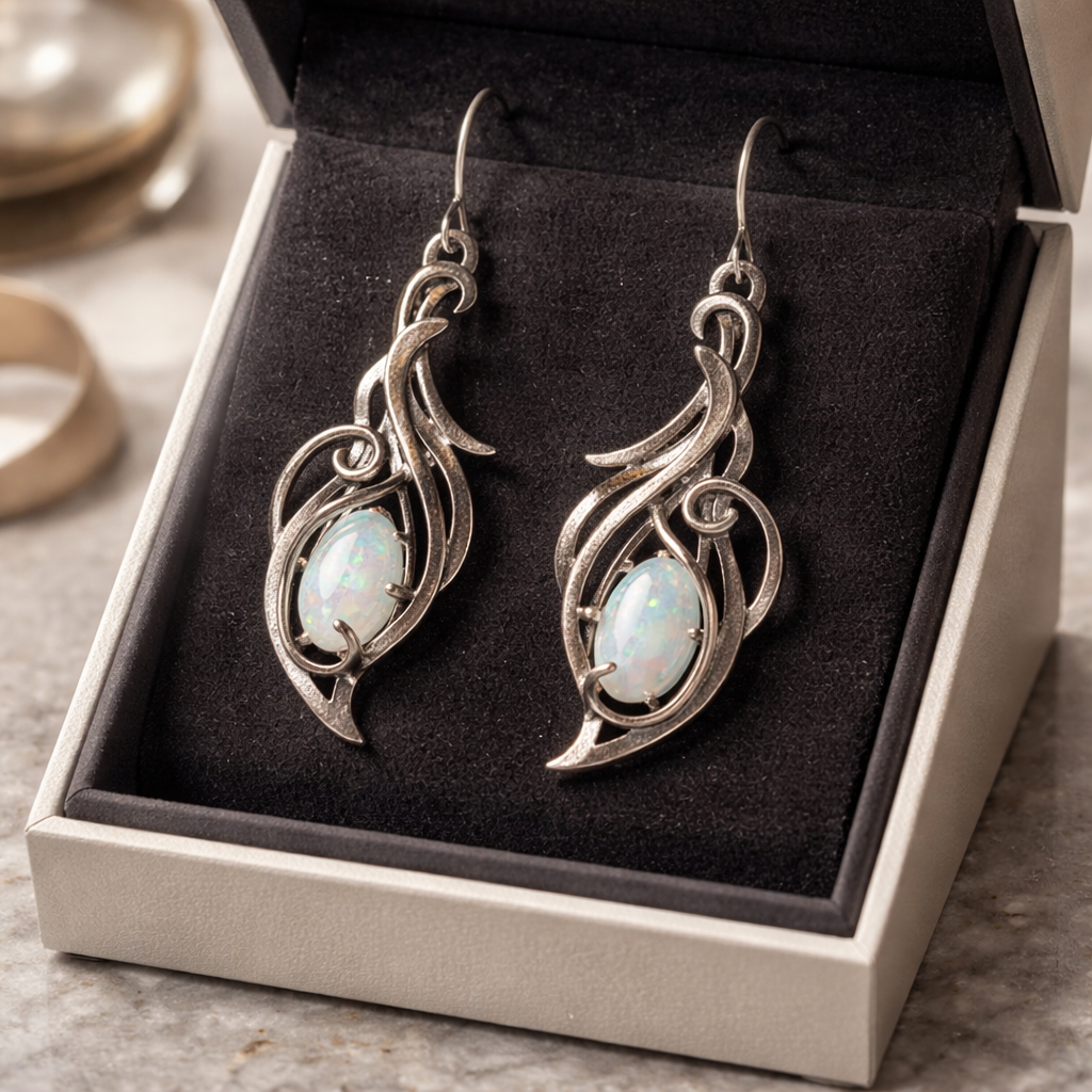 Synthetic opal is often associated with creativity, inspiration, and inner light, making these earrings not only beautiful but also symbolic.