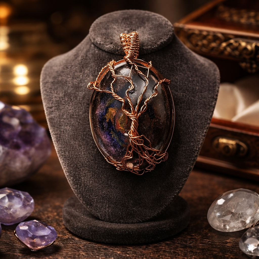 Savukvartsi riipus – Elämänpuu kuparilangalla