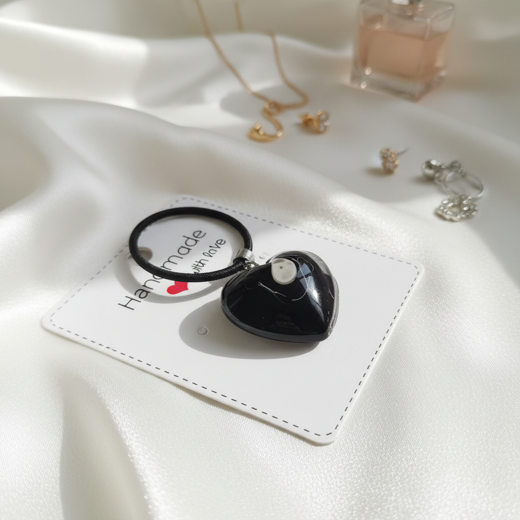 This elegant handmade heart pendant is crafted from epoxy resin and carefully finished to highlight its unique character. The deep, dark tone of the heart symbolizes protection, strength, and inner calm, making it more than just jewelry – a meaningful personal charm.