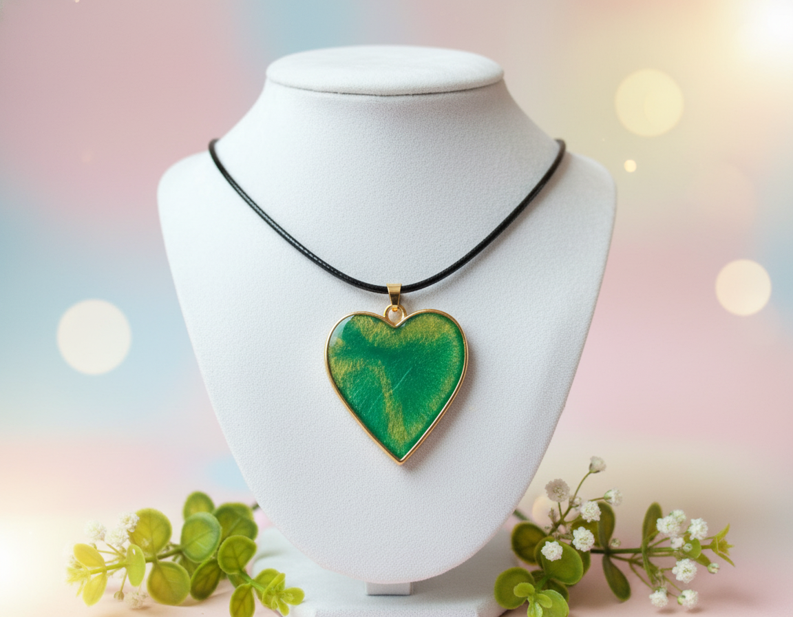 Sydämen muotoinen epoksihartsiriipus keinonahkanyörissä
